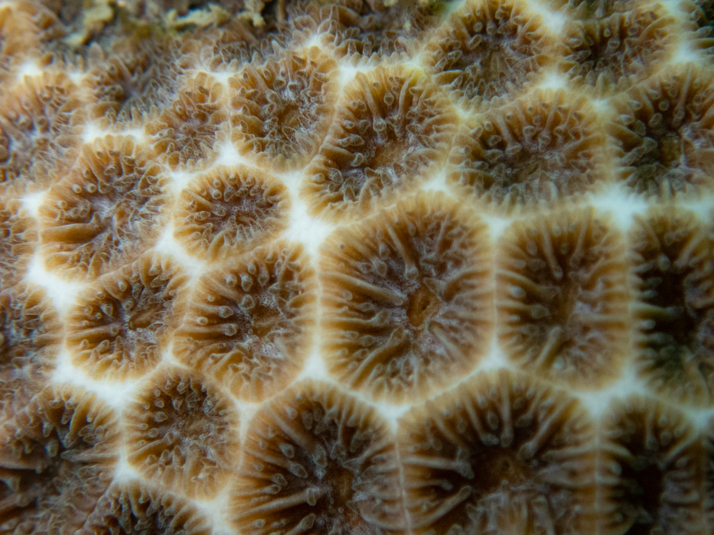 Thamnasteroid - A colony of polyps which have indistinct septa that flow between them creating complex patterns. |