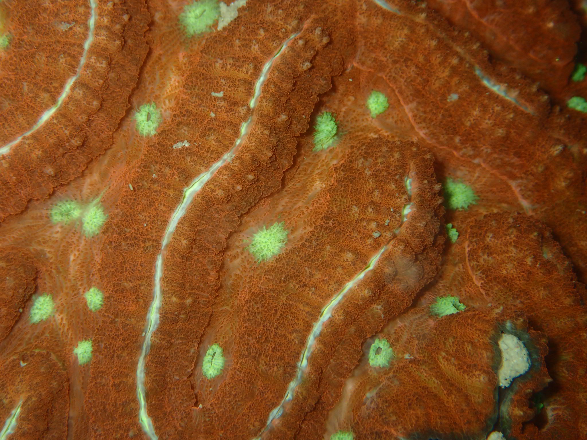 Thamnasteroid - A colony of polyps which have indistinct septa that flow between them creating complex patterns. |